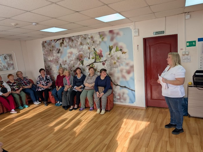 Сотрудники ГБУЗ НО "Воротынская ЦРБ" провели профилактическую беседу в КЦСОН Воротынского района в рамках декады пожилых людей.